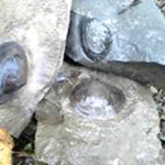 初めのうちはなかなか分からないかもしれませんが、どのような岩石に化石が入っているか、目が慣れてくると次第に化石を見分けられるようになります。