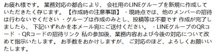 弊社から、個別にLINEグループの新規作成を依頼することはございませんので、十分にご注意ください。